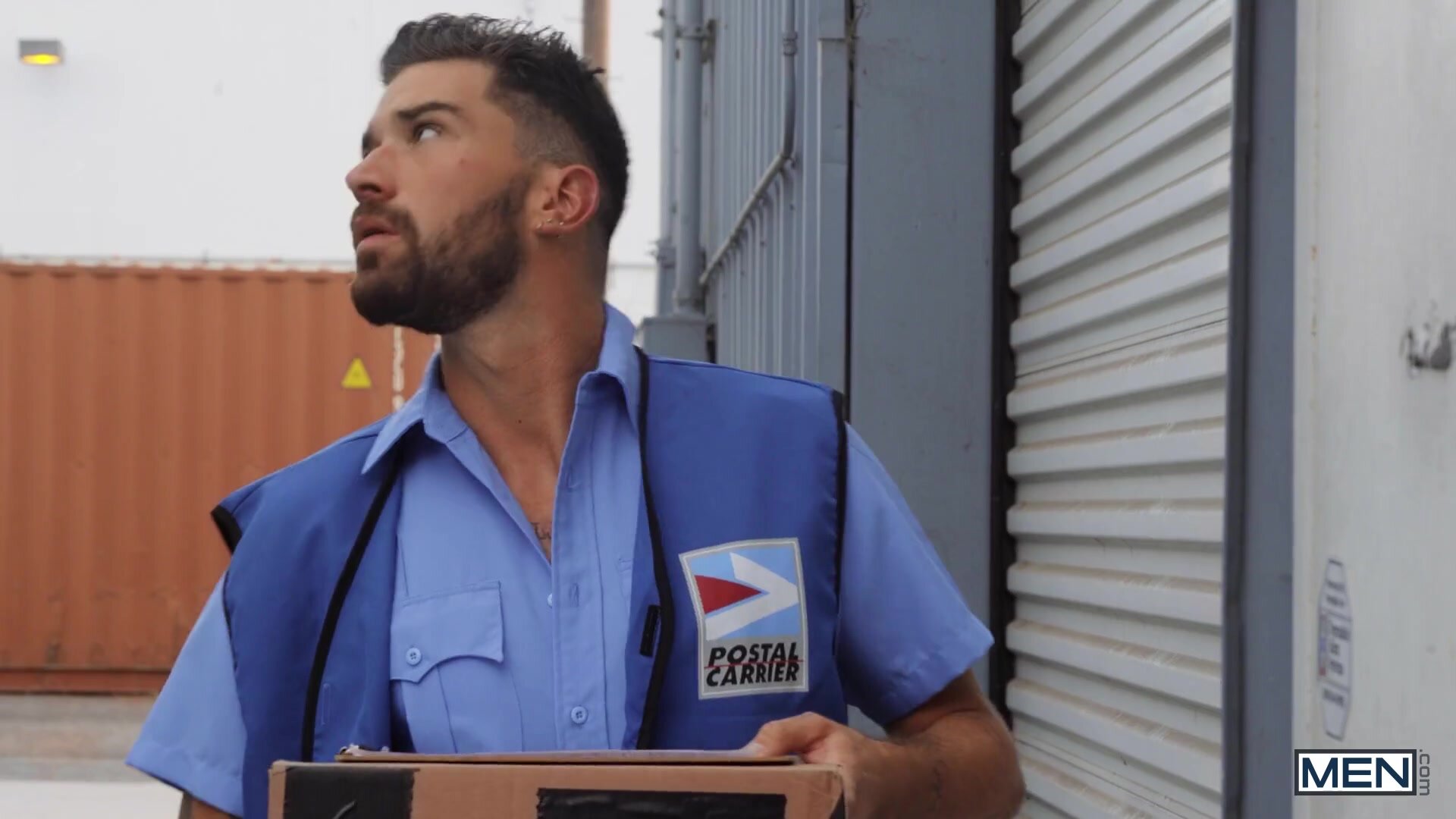 Bored elf Elf (Tannor Reed) is listening to Santa check his list yet again when delivery guy Chris Damned arrives with a package just for him! As Elf accepts the special delivery, the box comes open and all the dildos he ordered spill to the floor! Elf bends over to sign for the parcel, and Chris admires his red-clad, elfin ass. The horny top starts to get hard, and Elf hurries to suck his big cock. Chris tears open the bottom's overalls, spitting on his hole, then sliding a finger inside before stretching him with one of his new dildos. The top fucks the horny elf doggystyle and missionary on the desk till Santa catches them - but he just encourages Chris to fuck his elf even harder! Elf rides Chris's cock on the desk till the top pulls out and cums. Chris Damned is definitely on the naughty list for good!