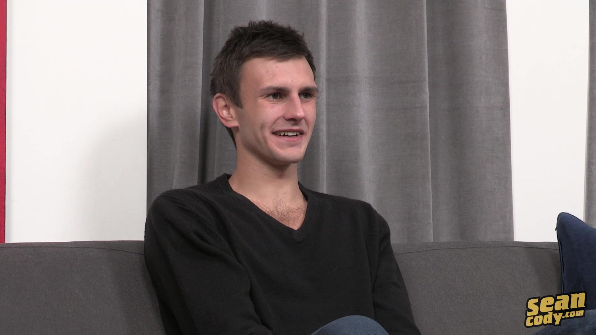 Randall is the tall, lean, cute, bashful type. He admits that it is hard for him the make the first move. “I’m a sweet guy,” he said. “It’s hard for me to get my courage up.” “Do you usually have to be asked out?” I said. He laughed. “Yeah, that’s usually how it is.” I think Randall is absolutely adorable. He was shy about taking off his shirt, but when he did I was impressed! He’s got a lanky, toned build, with olive skin and a little hair on his chest. Randall started to rub himself through his pants, and I could tell he was ready. “Let’s see what you’ve got there,” I said softly. I was impressed again! He’s got a really nice dick with a wicked curve to it, and a nice, full, dark bush!