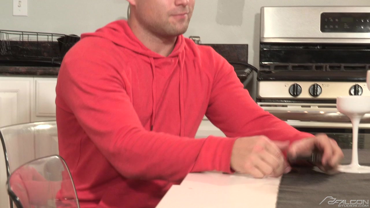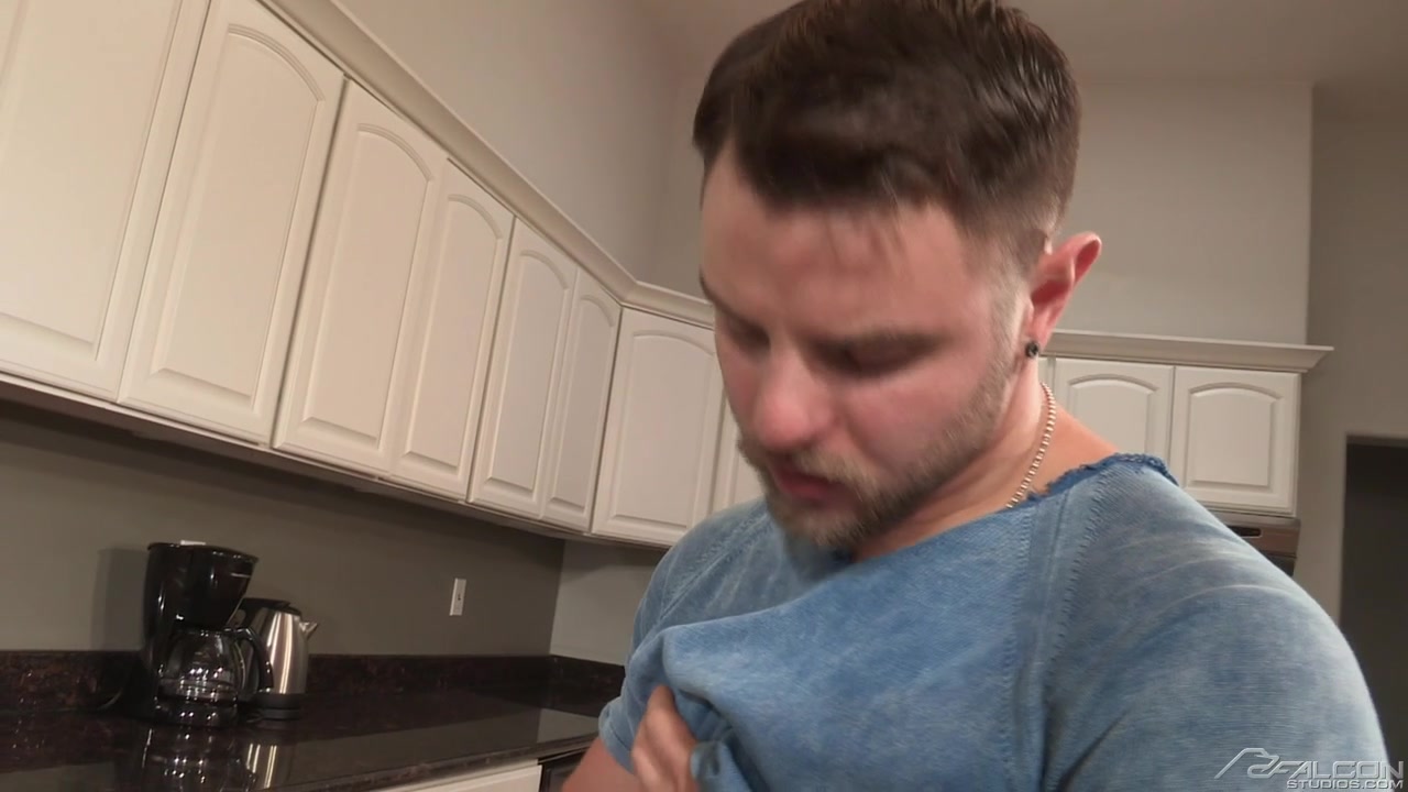 Feeling horny, Bobby Clark wonders if his favorite grocery delivery boy is on duty. He's in luck. Nick Sterling is the driver and Bobby places an order ... for groceries, but really for Nick. Nick's got a clipped beard, broad chest, muscular legs and some light fur. When Bobby gropes him, Nick says he has 'no time today,' but Bobby promises a quickie. Blow jobs are the first order of business. Nick kneels and Bobby grabs his ears and feeds him cock, but not before sucking Nick first. Nick makes direct eye contact while giving Bobby's cock and balls a work-over. Bobby gets weak in the knees, so he squats and eat Nick's ass. Bobby's tongue flickers at a dizzying speed that elicits mooing moans from Nick. Nick's flawless, creamy buns are the ultimate object of Bobby's attention. He loosens Nick up with a few slow strokes, then picks up the pace and shortens the thrusts. Flipping to a sit-fuck, Nick slams his hole hard onto Bobby's shaft, fine-tuning the angle and pressure to trigger a huge cum shot that flies across the room. Bobby saves his load for Nick's furry chest.