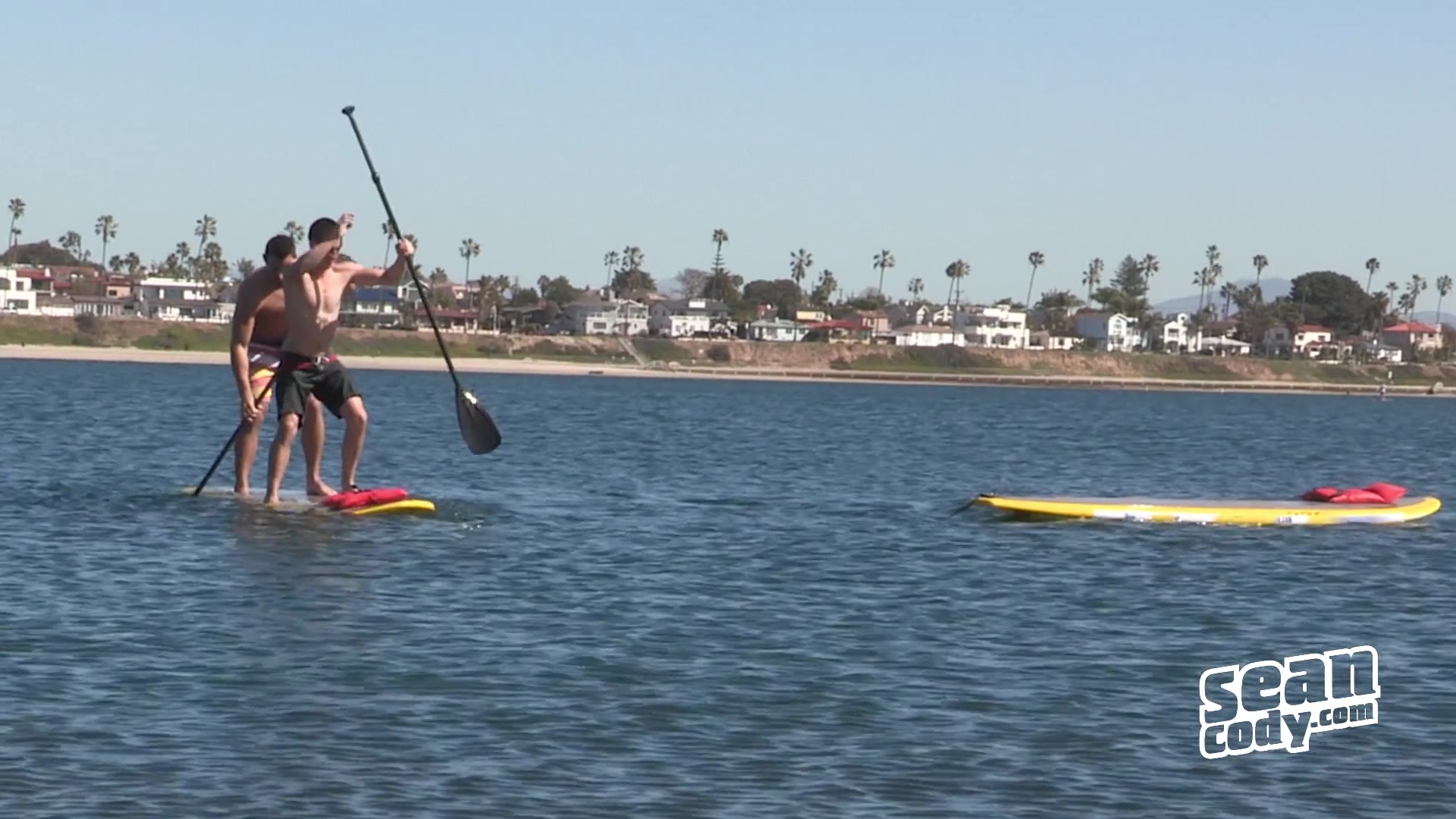 “So I feel like each time I come back here I should try to push my limits further and further!” Shaw said as we were in the car heading out to paddleboard. “What does that mean?” Cole asked. Shaw smiled a bit. “I have never had my ass eaten and I think that would feel pretty fucking good. “ Cole couldn’t hide the smile that slowly appeared across his face. “I’m really fucking excited! I’ve seen some of his stuff…he has a perfect ass!” Shaw and Cole splashed around and goofed off on the boards until it was time to head back to the studio and push Shaw’s limits. When we got back however, one thing we were not expecting was to see a dick go in Shaw’s mouth. “I think I might be a fan of sucking dick!” Shaw laughed.