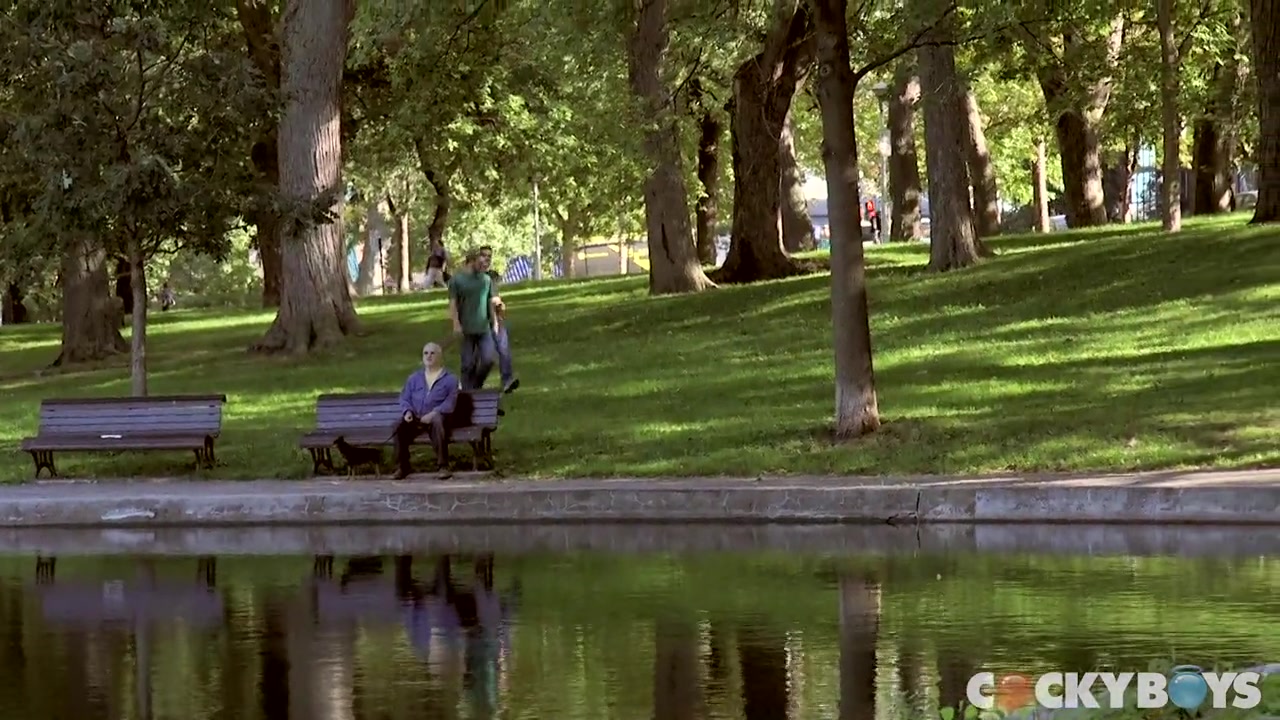 After they horsed around and got to know each other, Gabriel went straight in for Caleb's cock. Gabriel loves giving blowjobs, and he knows he does them well. After he bobbed up and down Caleb's rock hard cock, he stood up and let Caleb suck him off as well. And this is where Gabriel started getting rough, skull-fucking Caleb until his eyes watered. Gabriel flipped Caleb around and gave him a wet rimjob, but it was clear that Caleb's hole was really tight. So the guys switched positions again so that Caleb was on the floor, legs splayed om the air, while Gabriel loosened him up with his fingers.