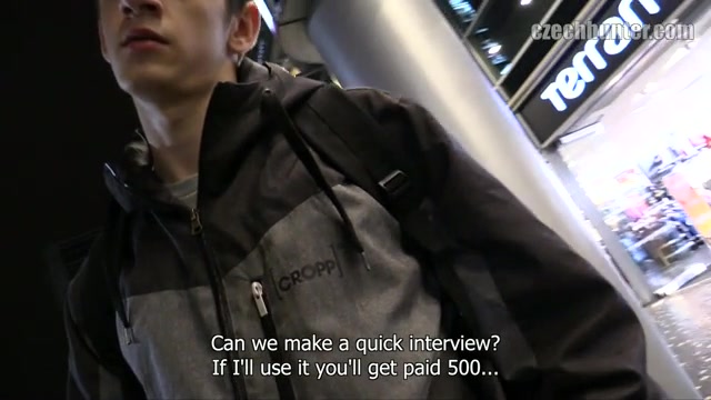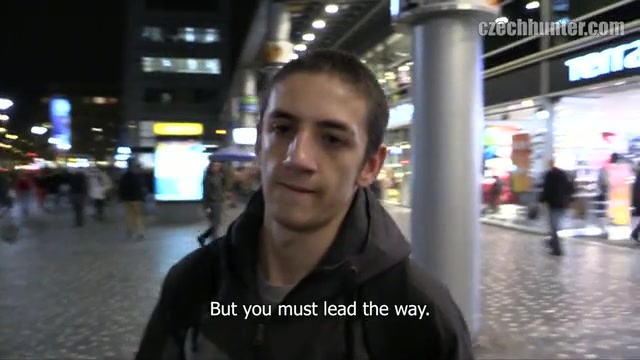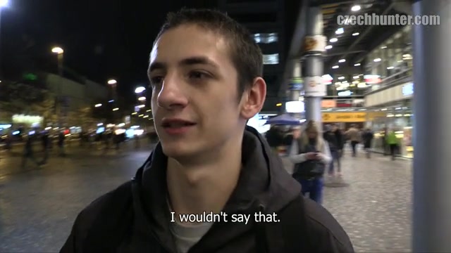 I just finished editing my video from the party last week and to see the stuff again made me so horny that I had to go out hunting again. It was a bit later already and I went straight to the nearest metro station to find today’s Mr.Right. It didn’t take long until I noticed a young guy rushing out of the station. He seemed to be in a hurry but still I started to talk to him. Actually he just came from work and headed home as he was tired. And he wanted me to switch off the camera immediately. But I offered him 500 CZK for a short interview and suddenly the camera didn’t matter anymore and he had as much time as I needed. He lived in Prague, studied to become a mechanic and worked part-time as a life-guard to make some extra money… did he mention „extra money“?