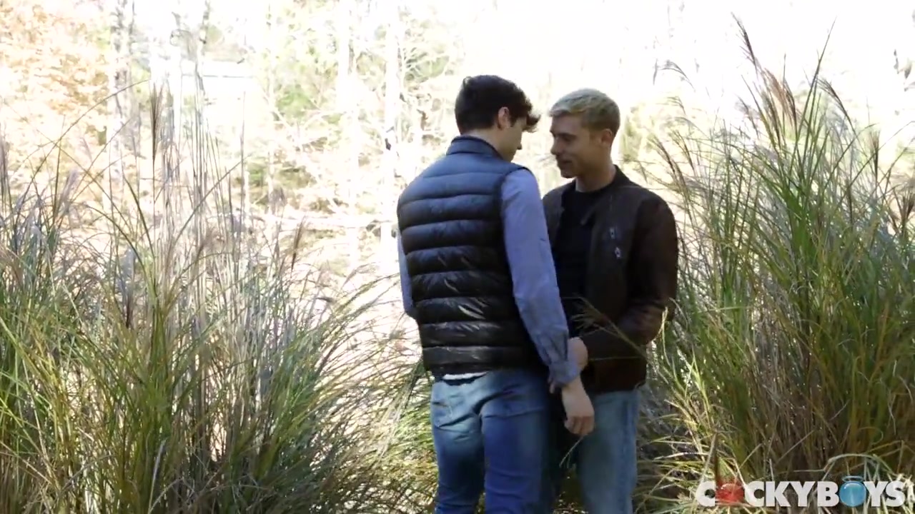 Justin Matthews is back in town and ready to play. He's heard a few things about how tight Christian Bay is and wants to give him all the attention he craves. A sensual walk down by the pond quickly leads to some hot and heavy making out and before long Christian is begging to suck Justin's cock.