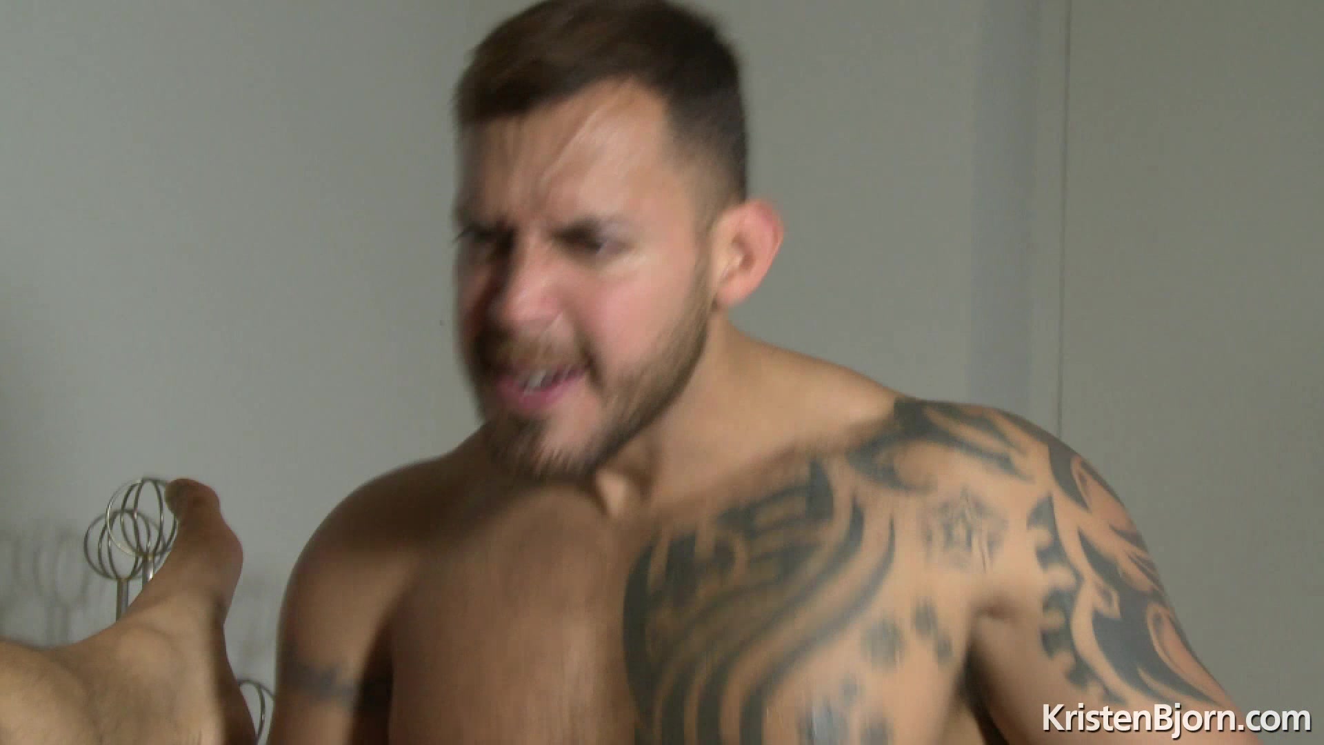 A comedy of errors ensues when Hugh Hunter attempts to read his tourist map and eat his ice cream when the handsome, muscular local, Viktor Rom comes along and saves the day. As Hugh fumbles with the map his ice cream drips onto Viktor’s bulging crotch. Without thinking, or maybe he was, Hugh takes his napkin and begins to dab the melted ice cream. And with that simple dab of the napkin the ignition is lite and Hugh is heading back to Viktor’s flat. These two masculine, muscle giants quickly strip away their clothes and Hugh is devouring Viktor’s monster cock. Viktor takes command and forces Hugh’s mouth down onto his cock as he begins face fucking the tourist. Hugh mounts the velveteen chair as Viktor’s tongue plunges deep into his hot, pink hole. Viktor sets up two chairs in preparation for some sexual acrobatics. At first Viktor simply bends Hugh over the one chair and drives his huge, raw cock deep inside of Hugh’s hungry hole. After some rough fucking Viktor is ready for a new position and places the two chairs close together and has Hugh plank on the chairs. As Hugh is in the plank position Viktor mounts from above and goes balls deep in that man’s hot ass. Hugh lets out groans of pleasure, pain, ecstasy, and desire as all of his sensations are mixed together and all are felt simultaneously. Hugh flips onto his back and Viktor takes full advantage of the position and pummels Hugh’s hairy muscle ass. Hugh’s cock stands at full attention as Viktor teases his ass by pulling out and then ramming the full length of his shaft back inside of his bare ass. Hugh’s balls have drawn up tight as they prepare to send his thick load of cum up his fat shaft and out of his pulsating cock head. Hugh’s load of cum covers his furry abs, which turn Viktor on by knowing that he fucked that load out of the tourist. Viktor sprays his creamy load all over Hugh’s pink hole, massages it with his cum slicked cock then rams it back inside so that the tourist can have ice cream and some Spanish cream as well.
