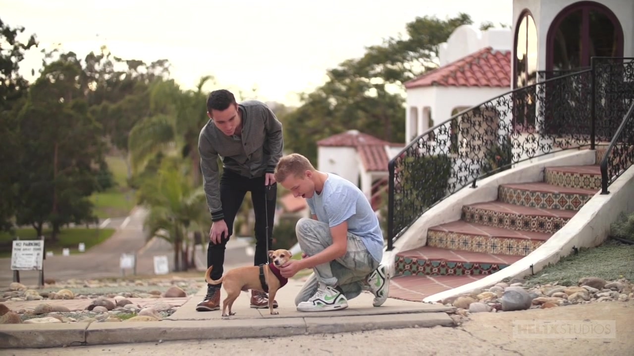 Crazy hot cutie Chandler Mason doesn't need any help pullin' ass! However, walking one of most pretty dogs on the planet gives twink super star Noah White a flirty opportunity for an opening line; which brings these two dirty dogs together for one dynamic dicking! After some puppy love and petting in the dog park, the boys bring the heat back Noah's bedroom where they put every dog IN the park to shame! The two twinks tear into each other like dogs in heat; rocking each other's cocks in a super sexy 69. Keeping in theme, Noah sniffs and licks Chandler's amazing ass before lubing up his new friend's pole and popping his perfect peach on top. After the ride of his rump's life, Chandler gives our boy a treat by whipping him off his feet, letting only his hardness hold the kid up like a support beam through his middle. As if that wasn't enough, the pervy pair switch places and naughty boy Noah pulls his own weight as a terrific top! Pulling hair and fucking ass like a rock star, Noah annihilates Chandler's beautiful booty and the brazen bottom can only ask for more! Noah is quite the amazing top; but lets not kid ourselves folks, the boy likes a boner up his butt when he busts. Mason is more than happy to oblige. They flip once again and Chandler punishes White till he fucks the cum right out of him. Our twink super star winds up soaked with himself.... and with his new friend! - Noah White, Chandler Mason