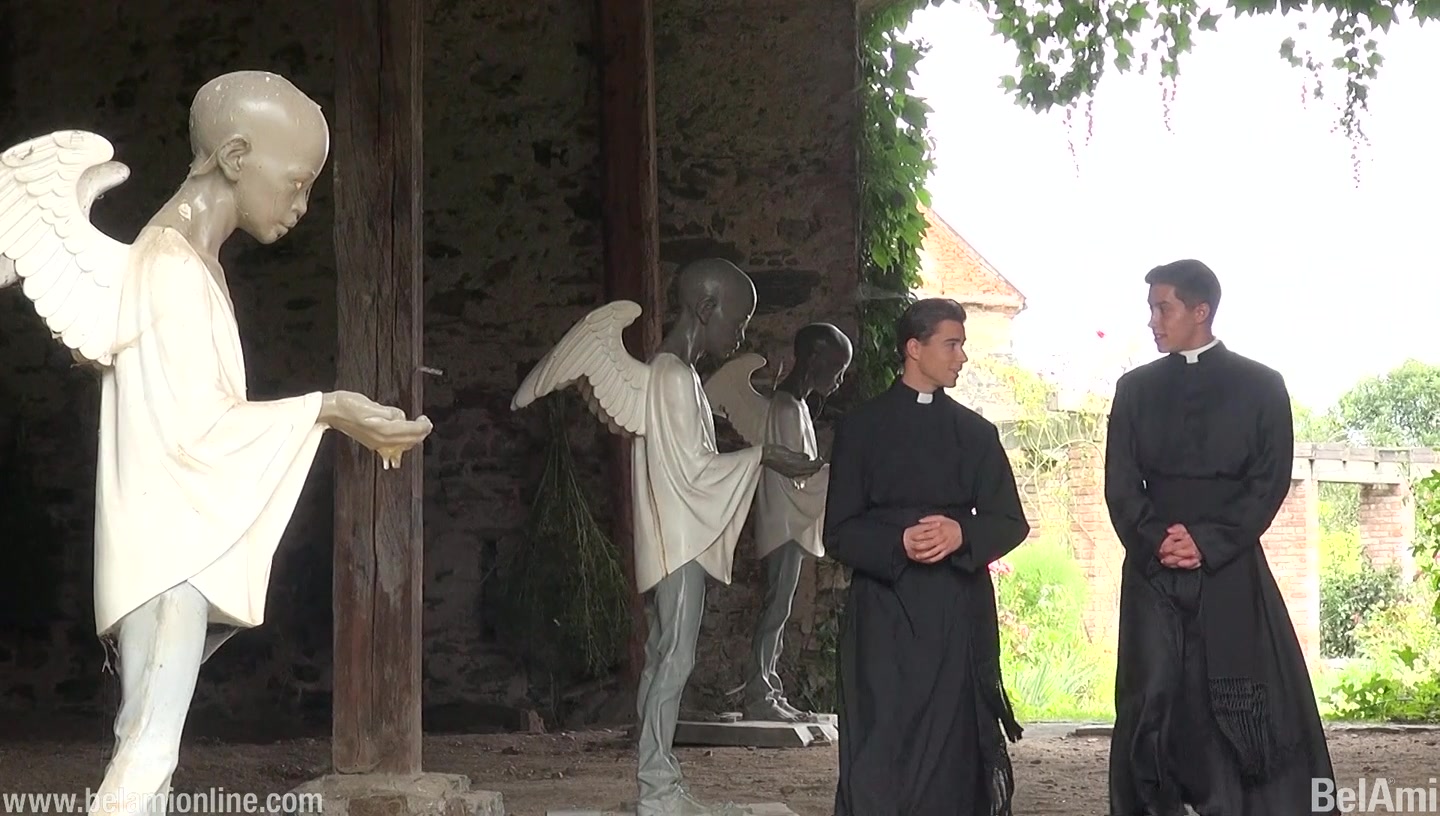 In an effort to fulfill his part of the bargain, Brother Massimo disguises Gino as a priest to smuggle him onto the grounds of Castello KinkyAngelo. Or perhaps Gino’s been converted?