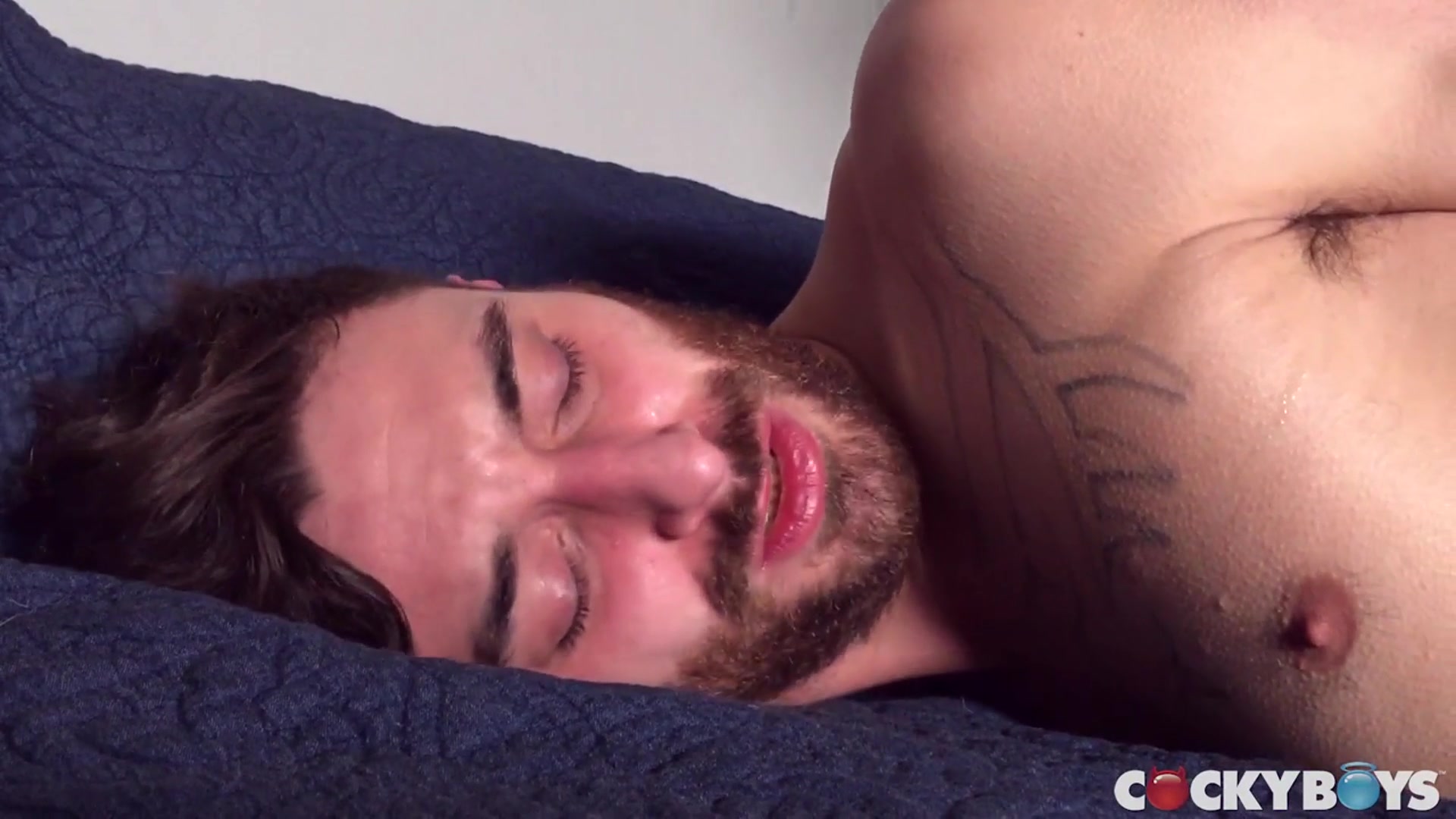 Then the dildo was brought out -- a rubber mold of Levi Karter's cock, actually! This thing was fucking huge, but Dillon really wanted it inside him. It took Lev a few tries, but he was finally able to shove the whole thing up Dillon's eager hole, with Dillon moaning after every inch! For their grand finale, Dillon and Lev got into a hot sixty-nine position, both rimming and sucking each other. Dillon jerked out a huge load on Lev's chest, before graciously helping out Lev with a fast and furious handjob