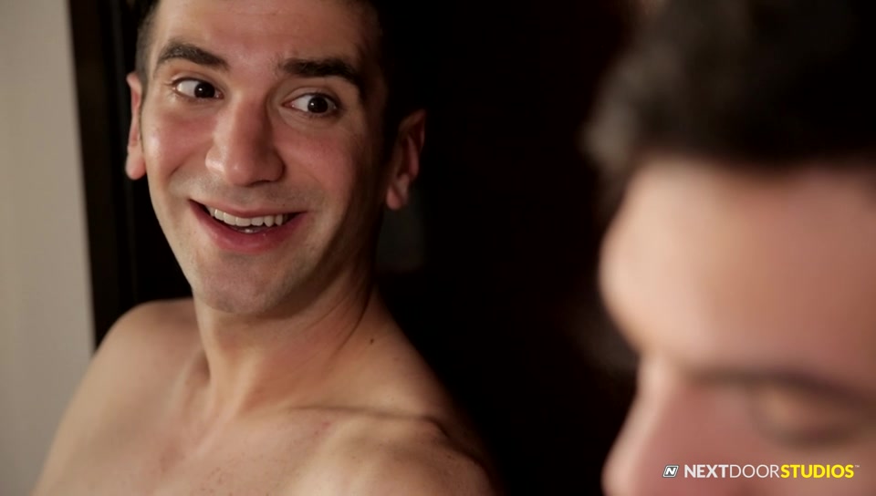 Jason is a bit unsure of what he's doing, but he slides his cock inside Andy and begins to pound, as Andy moans with pleasure. Jason has to admit his cock feels really nice as he goes in and out of Andy's bubble butt, but Andy wants control, so he positions Jason on his back and mounts him, riding him like a horse as he bounces up and down, grabbing the headboard as Jason pounds him from below. With both guys ready to explode, Andy flips over one more time onto his back, as Jason goes for end zone, fucking Andy hard as he strokes himself off, jizzing all over his stomach and chest as Jason pulls out and blasts him with his load. Better a puddle on your stomach than in your pants, he reasons, as the two of them get cleaned up for dinner.