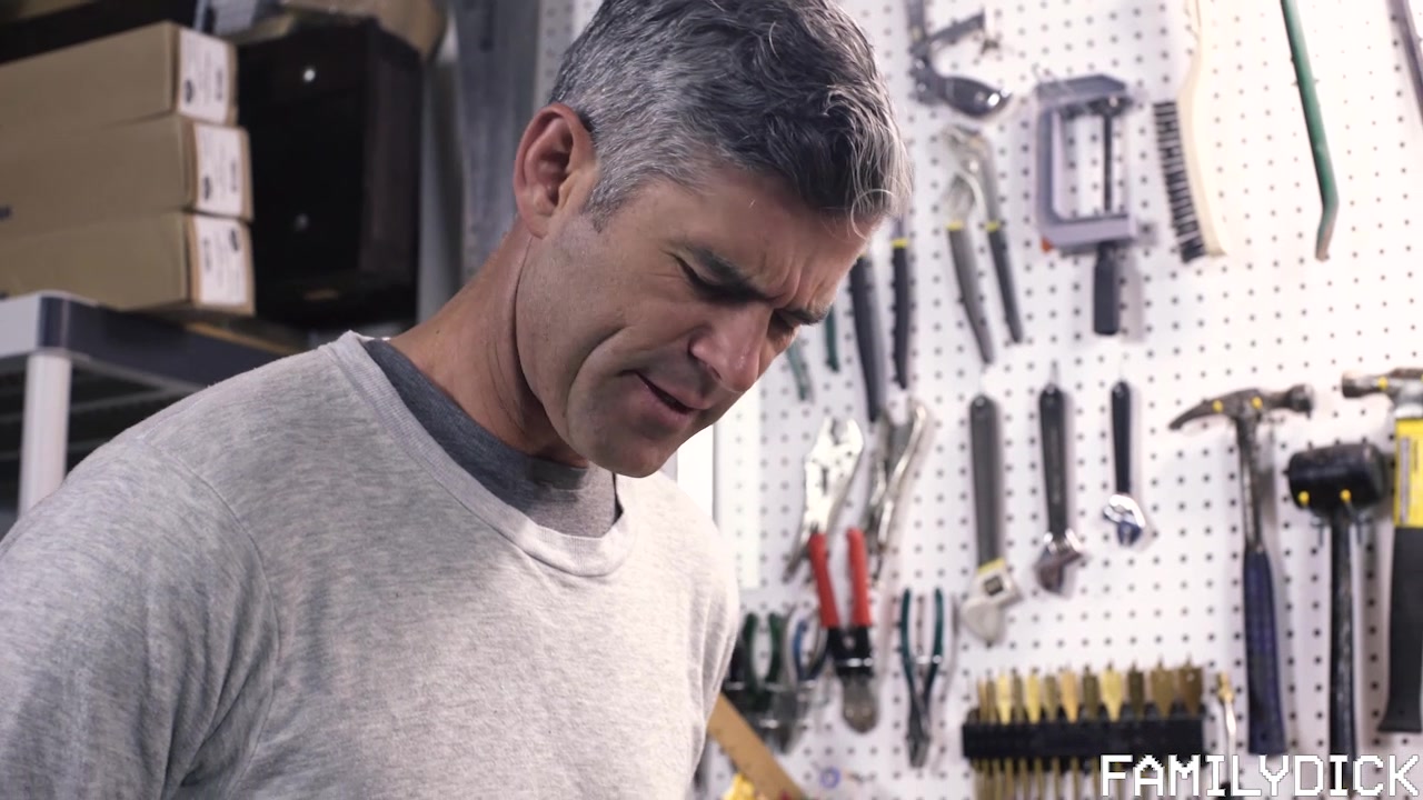 The dad told me that he’s been watching his son grow up, getting more handsome day after day. In this video, that admiration gets the better of him and he takes his son’s hole right there on his workbench.