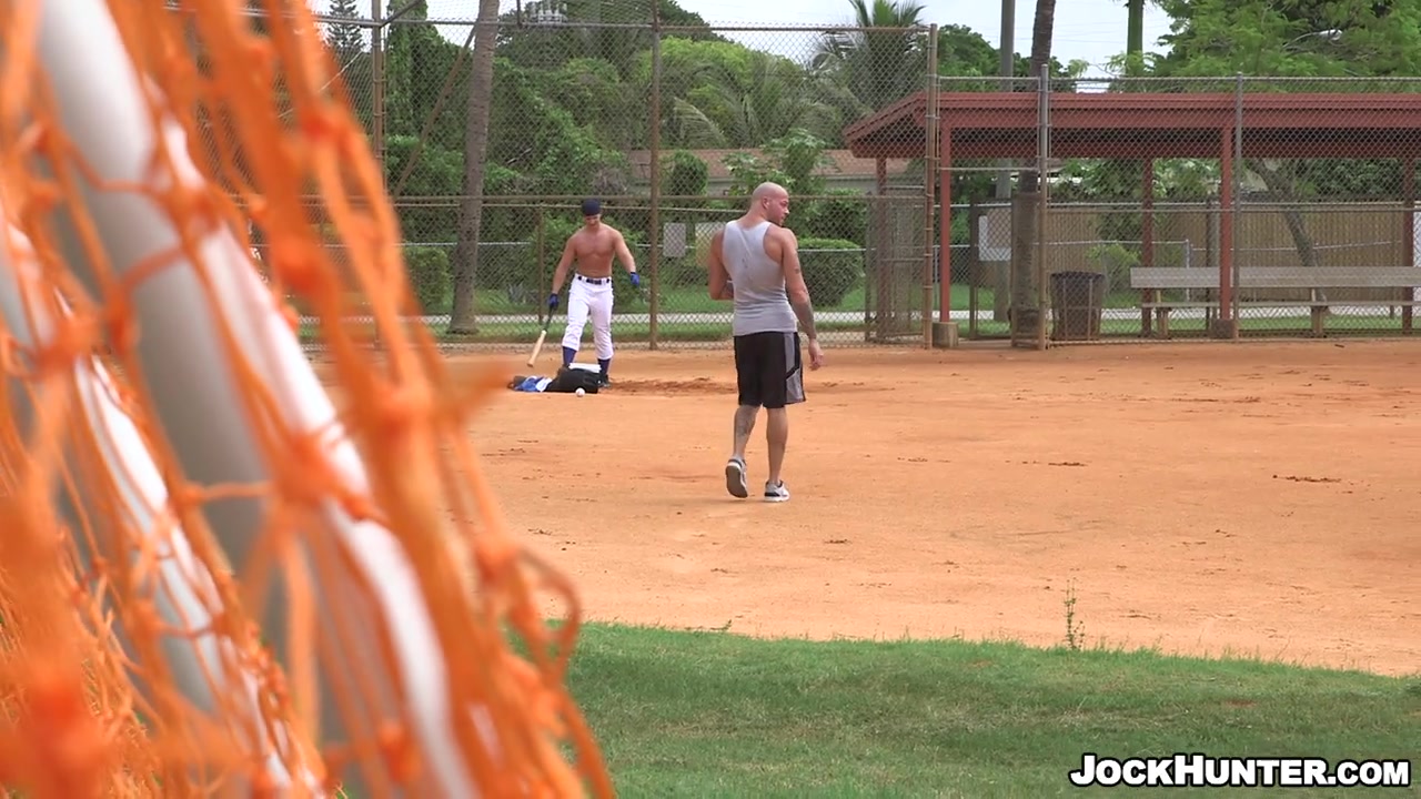 Sean Duran is on the hunt! He needs some firm Jock asshole to pound with his hard cock! This time, we find a handsome fit stud named Logan playing with a baseball bat all by himself.... I figure we can help him out a bit, since he seems to know how to hold a stick properly ;) We all work up a sweat outside, and take things to the showers at the rec center. He doesn't suspect it, but before he knows it he has Sean's nice muscular hands on his dick. Minus well have some fun eh? This straight guy wraps his lips around hard sausage in no time.. and best of all, we catch it on film! Hardcore chiseled jocks indulging in rectal pounding in the shower. Oh, the glory! - Sean Duran, Logan Vaughn