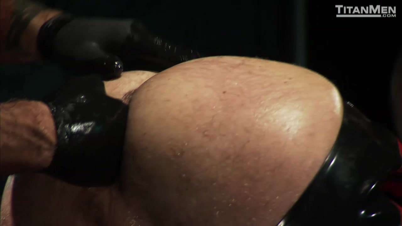 Massive muscle man Spencer Reed, handsome buzz-headed Junior Stellano, and a furry, inked Tibor Wolfe, wearing latex chaps, swap spit and cock strokes in a dim-lit dungeon. The leather harnessed Spencer face-fucks Tibor, then aims a strong geyser of piss all over Tibor's hole, slapping his ass until drops fly through the air. He gets his big cock into Tibor, holding tight to his waistband for leverage as he pounds away. Junior take his turn on Tibor's hairy hole, fucking him hard until his balls slap the bottom's cheeks. Junior pulls out and works his wet fingers into the stretched hole. Spencer grunts, "It's your turn, boy," ordering Junior down on all fours so that Spencer can get his thick hard pipe all the way into Junior's muscular ass with one shove. Spencer pulls out of Junior to spit on and slap his hole, then plows back in again. Then Spencer slams an enormous, ridged dildo into Tibor's upturned ass. Tibor takes it like a trooper, grunting, his mouth firmly clamped around Junior's cock. Spencer works the monster dildo all the way in, shaking it around to give Tibor's prostate a good work-out. Spencer and Junior admire his stamina before shoving in a thicker dildo. Junior slides his entire fist into Tibor’s stretched hole as Spencer marks the bottom with another piss geyser. Then Spencer works his big hand slowly up into Tibor, opening the man's ass enough to take his entire fist. Then Spencer urges Tibor to back up on both of Junior's slick mitts. Junior punch-fucks Tibor with alternating fists, Tibor's cock standing at attention as he opens up his deep red hole for Junior's inspection. Lodging his fist firmly up the bottom’s ass, Junior urges Tibor to pound his meat until he erupts all over his hairy chest. In serious heat, Spencer and Junior dump their own thick loads of cum all over the blissed-out bottom - Junior Stellano, Spencer Reed, Tibor Wolfe