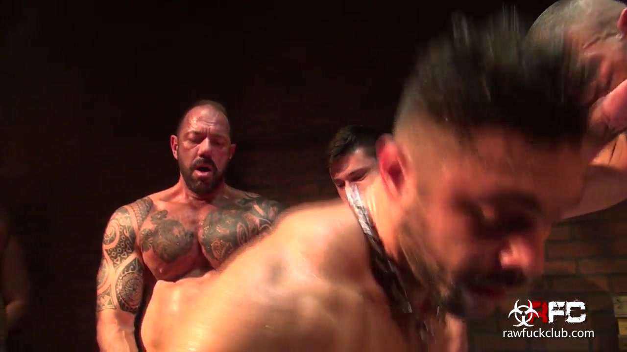 Seth Santoro's ten-man gang bang rages on as the insatiable bottom pushes himself to higher levels of pigginess. After being spit roasted, double penetrated, and taking load after load of cum down his throat, and in his wrecked hole, the fuck crazed bottom unleashes a huge load of cum while the tops hose him down with their hot piss - Jon Galt, Scott DeMarco, Jake Morgan, Clay Towers, Vic Rocco, Jack Andy, Seth Santoro, Sean Duran, Jace Chambers, Declan Moore