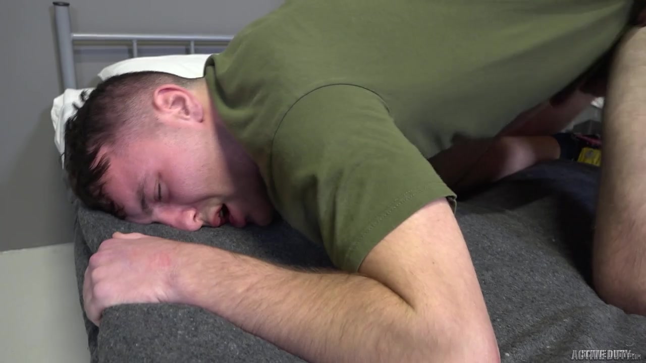 Elijah Canon and Mark McKenzie are stuck in their barracks with nothing to do except for one idea which is to begin stroking their cocks. They both are in their separate beds as the look over at each other playing with their dicks. They start to get way to horny and they decide they need to begin sucking each other's cocks. Elijah and Mark take turns sucking on each other's hard dicks. They move into position and the soldiers begin fucking making each inch of that dick throb in place as each thrust makes for one amazing moment. Once the sultry soldier is doing blowing his load he leaves to go take a shower and his buddy is left alone to finish himself off. With a few more strokes he unleashes his load all over his chest.