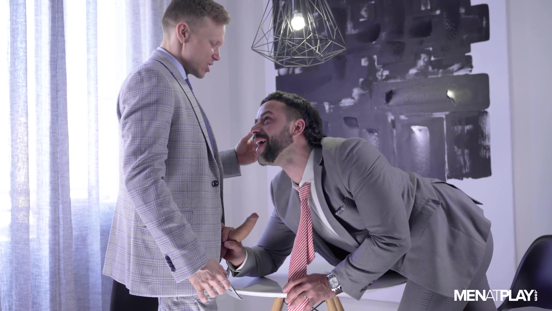 Ethan Chase, a successful businessman on his way to the airport, gets picked up by his personal driver, Teddy Torres. Just as they are about to head out, Teddy gets a notification that Mr. Chase’s flight has been delayed. Ethan invites Teddy to wait with him upstairs while he practices his presentation. However, with his nerves getting the best of him, Ethan knows how his driver can help to slash his stress level; with a flip-flop fuck session that leaves both men to wish for more future flight delays!