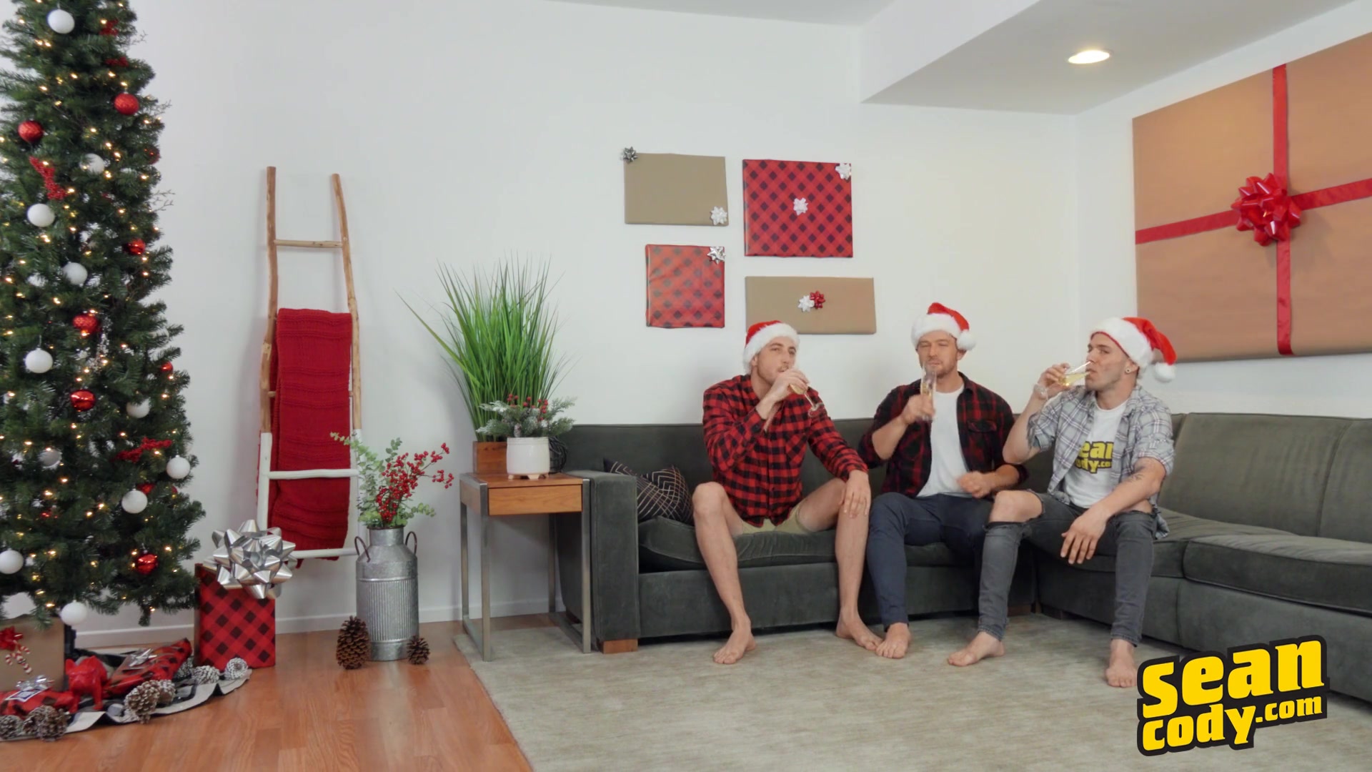 What do these three Sean Cody hunks want for Christmas? As they open presents by the Christmas tree and toast to Bentley's first scene, Deacon says, "I really want an amazing three-way. Again." Newbie Bentley adds, "I just want the sex scene to be awesome." And Kurt? "Maybe getting manhandled, maybe a creampie... not sure which one." If Kurt's been very good this year, he might just get both! The guys change into their new holiday onesies, taking their boners out, and Deacon pops open Kurt's butt flap to eat his ass as the bottom sucks Bentley's cock. It's time for Kurt to get manhandled as Bentley fucks him mish while Deacon gives Bentley's ass some attention. After the guys suck each other till they cum, Bentley fucks Kurt while getting pounded by Deacon, and then Kurt asks for both cocks inside him at once, taking every inch in a super hot DP. It seems like everyone's Christmas wishes are cumming true!