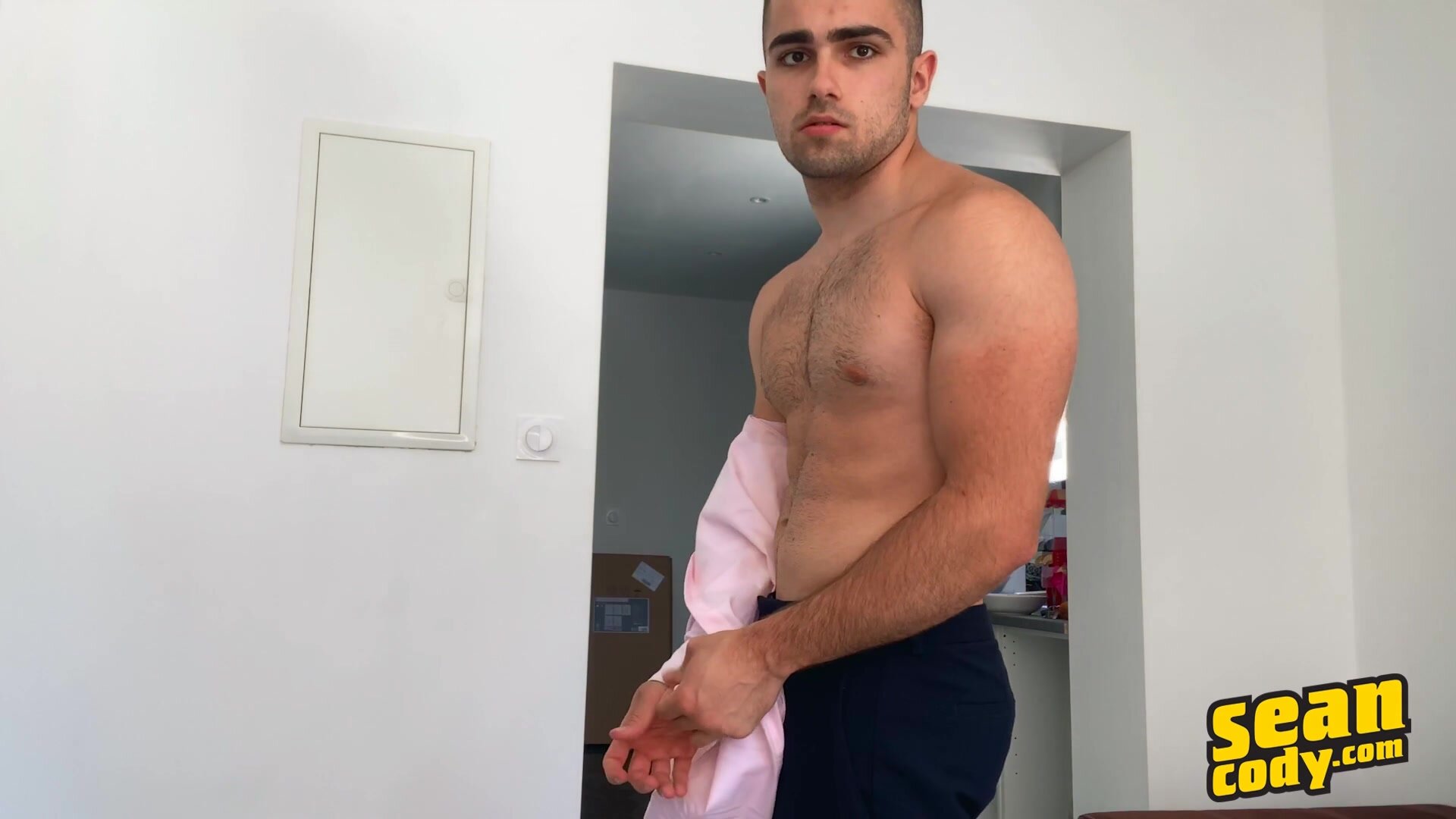 Well-dressed Euro stud Thony Grey is hiding an impressive physique under his dress slacks and pink button-down shirt, and he plans to let you in on the secret. "I'm really, really horny today," he says. "And because the weather where I live is really, really hot, I wanted to share this moment with you." Thony knows how to tease as he unfastens one button at a time, then eases off his shirt and pulls down his trousers to show you his perfect muscle ass. He takes off his shoes and finally gets naked before getting his big dick nice and hard. It feels so good that Thony moans in super sexy French as he fucks his hand and trembles all over from his intense masturbation! Thony promises a very big load, and after lots of edging, he delivers, covering his chest and abs with cum!